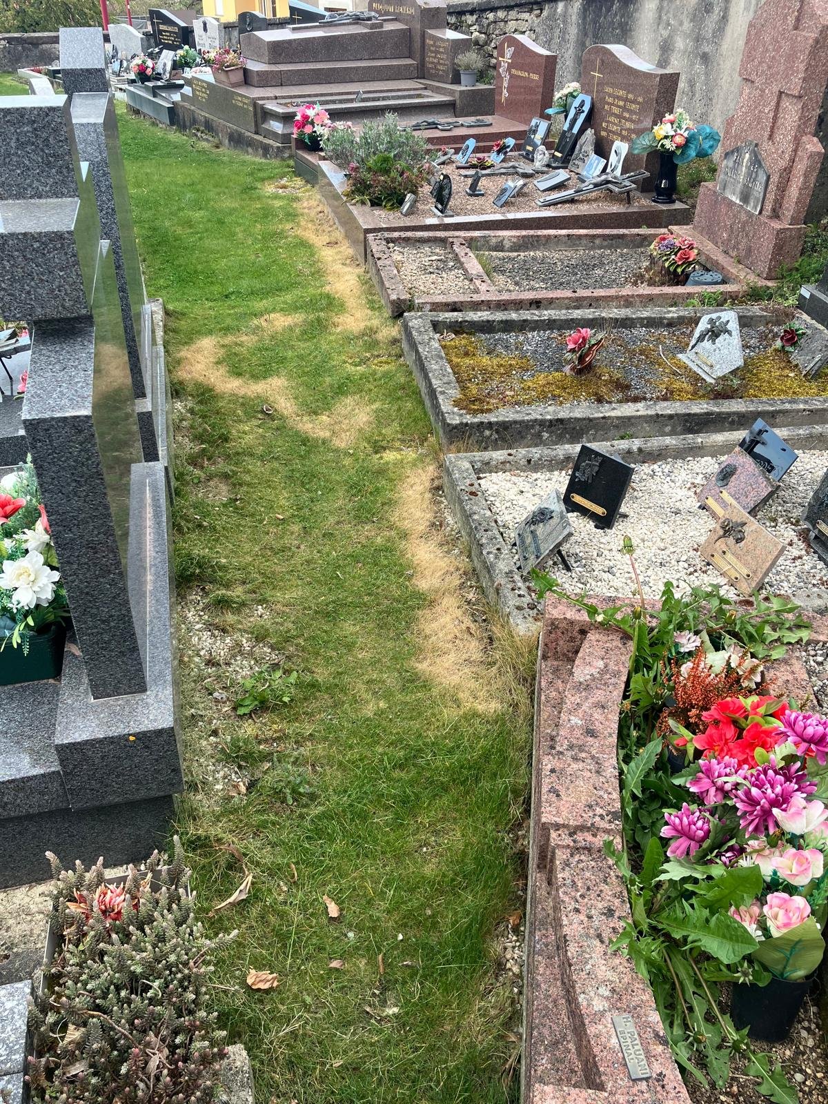 Mais Ô rage, Ô désespoir certains de nos concitoyens ont pensé qu'un petit peu de désherbant devant certaines tombes pourrait être du plus bel effet !! Raté.