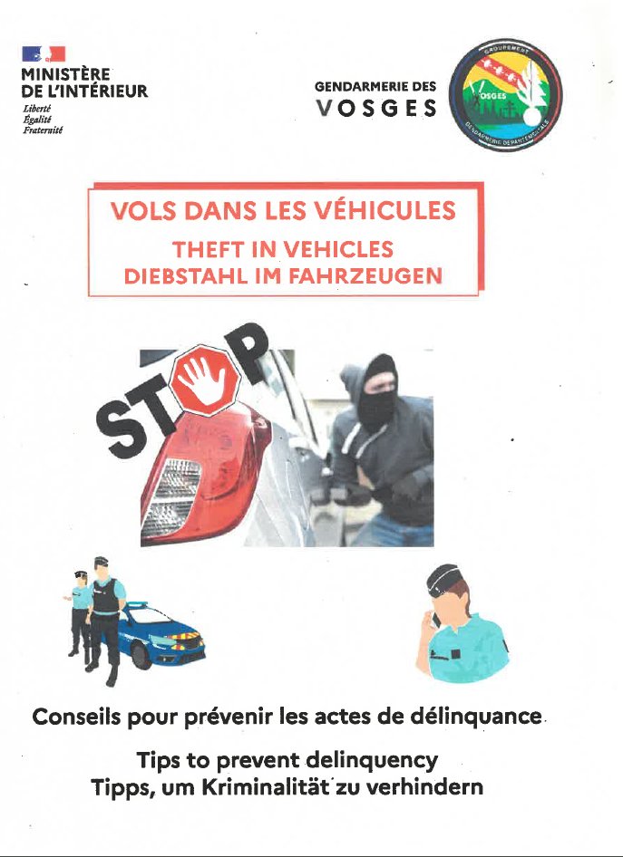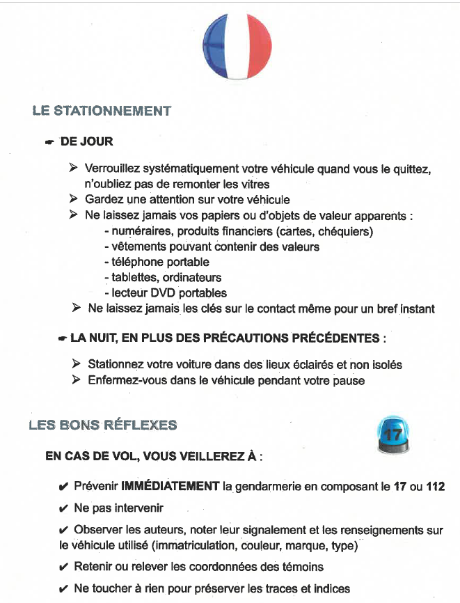 Vous retrouverez en pièce jointe quelques indications pour avoir les bons réflexes et mettre tout pour prévenir les acte de délinquance.