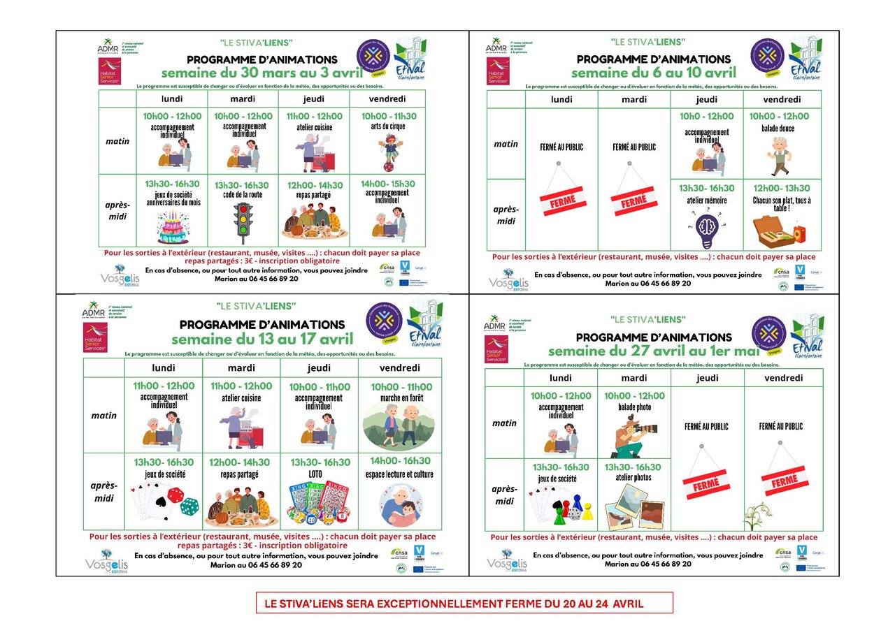 Programme des animations du Stiva’liens pour le mois d’avril.